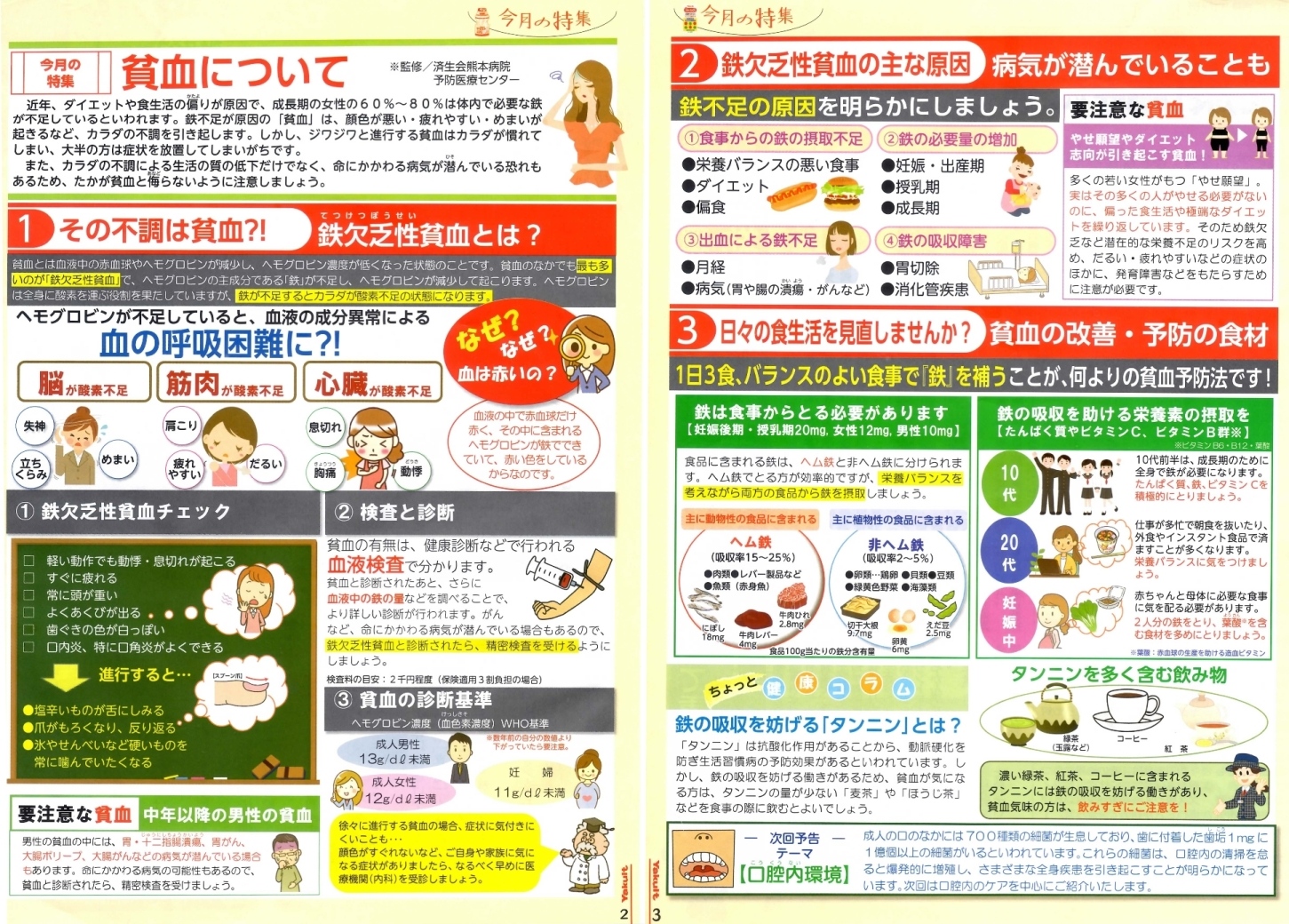 先生曰く、鉄は吸収が悪いので一旦貧血に陥れば食事療法だけでは改善は難しい。食事で赤身肉やヒジキをいくら食べても予防にしかならないとの事です。 詳しく書いてあるパンフを張り付けておきますので、思い当たる節が有る人は早めに対策しときましょう。
