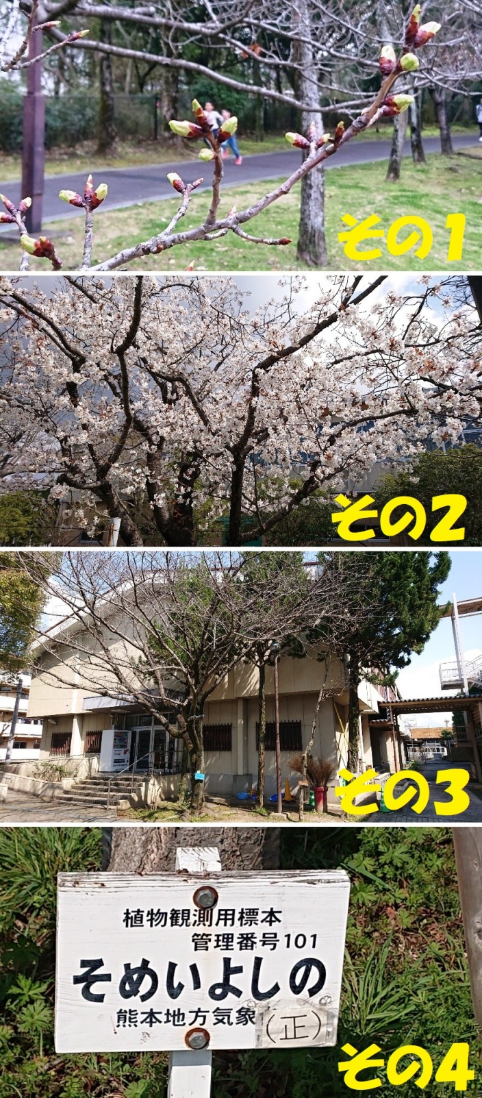 登校(投稿)禁止が続いているようで…勝手に開校(投稿)します。? まだ今日は天気も良いので、一足先に花見ラン…? 熊本市の開花予想は、一週間後の三連休中、3/21(土)とか……? 写真は、昨日の健パの蕾です……、横田さん、松村さん、元気に走ってました。